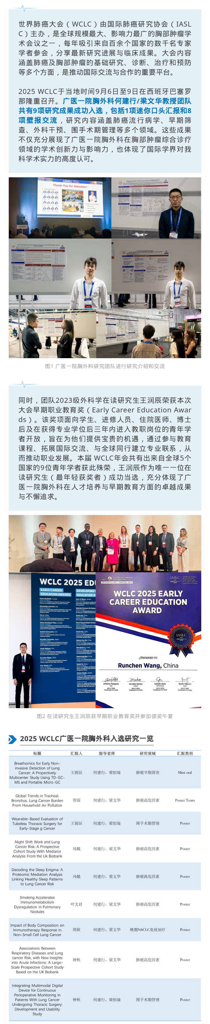 2025 WCLC | 广一医院胸外科9项研究成果入选第26届世界肺癌大会,团队成员获早期职业教育奖