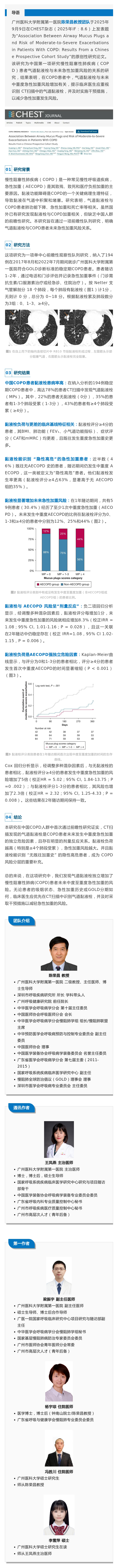 陈荣昌教授团队发表研究:慢性阻塞性肺疾病患者气道黏液栓与未来中重度急性加重风险之间的关联:一项中国前瞻性队列研究结果