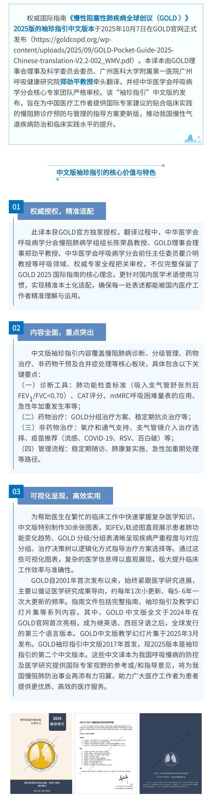 《慢性阻塞性肺疾病全球创议(GOLD)》袖珍指引中文版正式上线