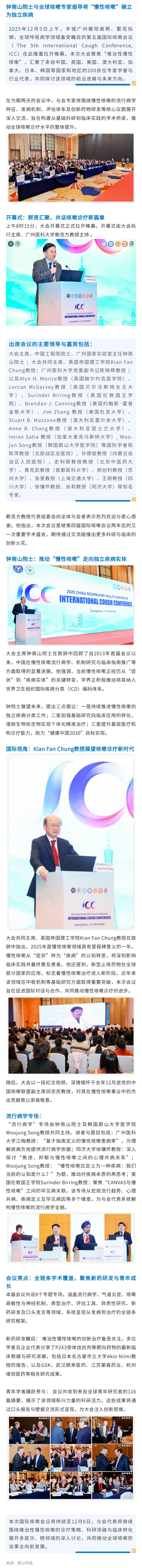 全球咳嗽专家齐聚广州:2025年第五届国际咳嗽会议隆重开幕