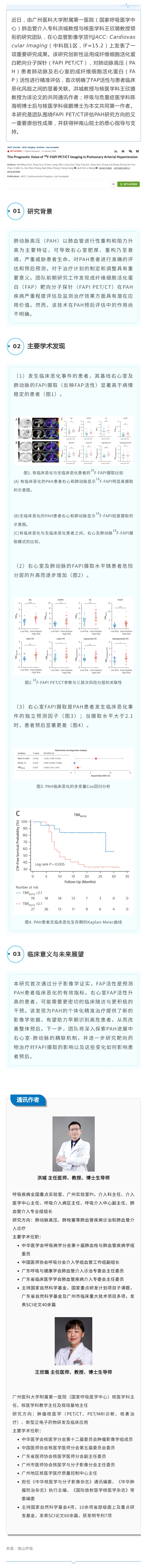 JACC影像子刊|广州医科大学附属第一医院洪城与王欣璐教授团队利用成纤维细胞活化蛋白靶向分子探针预测肺动脉高压临床恶化