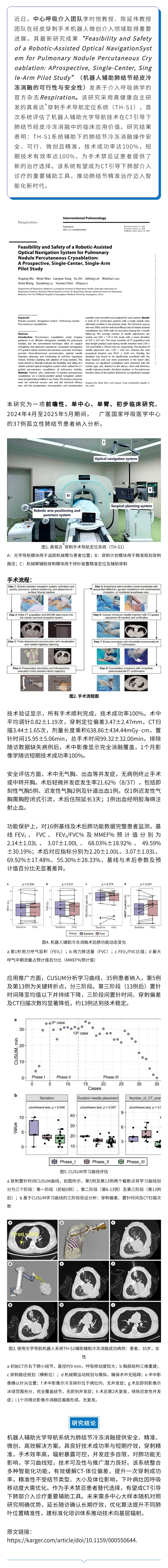 中心呼吸介入团队发表前瞻性研究:机器人系统辅助下肺结节经皮冷冻消融结果