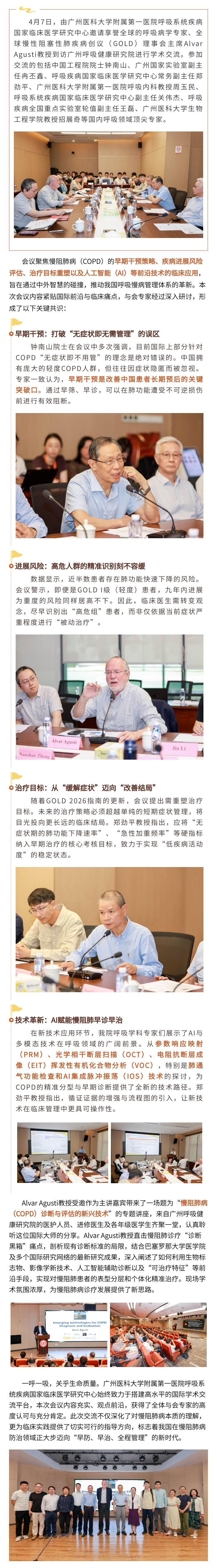 中外呼吸大咖齐聚羊城,共探慢阻肺病防治新路径 全球慢性阻塞性肺疾病创议(GOLD)理事会主席Alvar Agusti教授来访